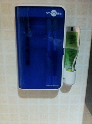 С помощью аппарата можно одновременно стерилизовать до 5 предметов личной гигиены. На боковой поверхности прибора находится держатель зубной пасты.